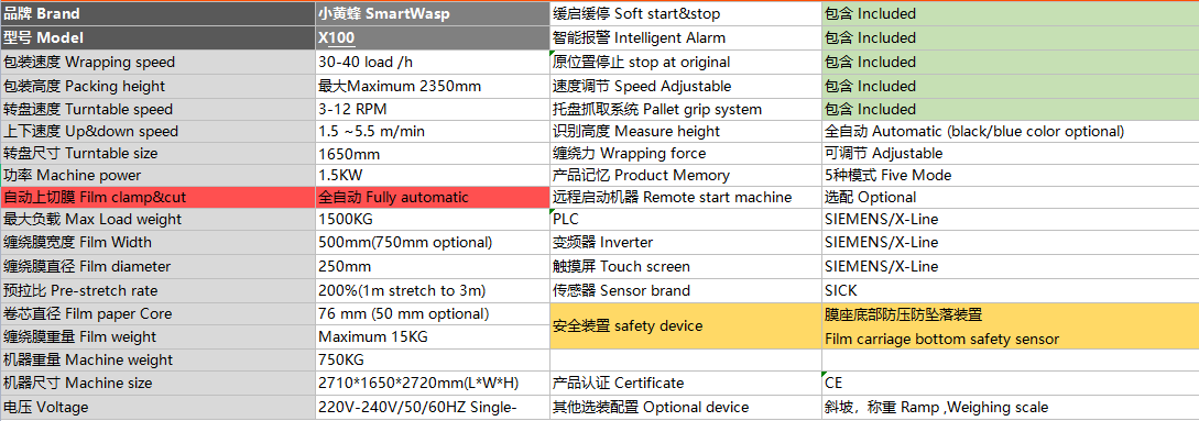 小黃蜂全自動(dòng)智能纏繞膜機(jī)X100,采用全自動(dòng)上斷膜裝置,搭配遙控裝置,操作員在將托盤(pán)貨物放置在圓