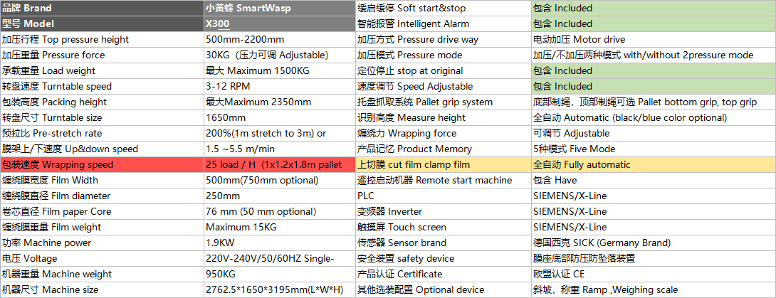 小黃蜂全自動(dòng)加壓型智能纏繞膜機(jī)X300,采用電動(dòng)加壓裝置,全程壓頂,針對(duì)于單個(gè)貨物較輕及碼垛較高